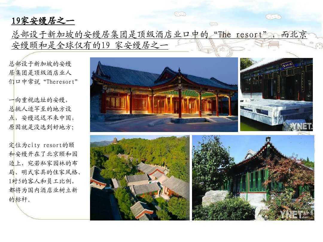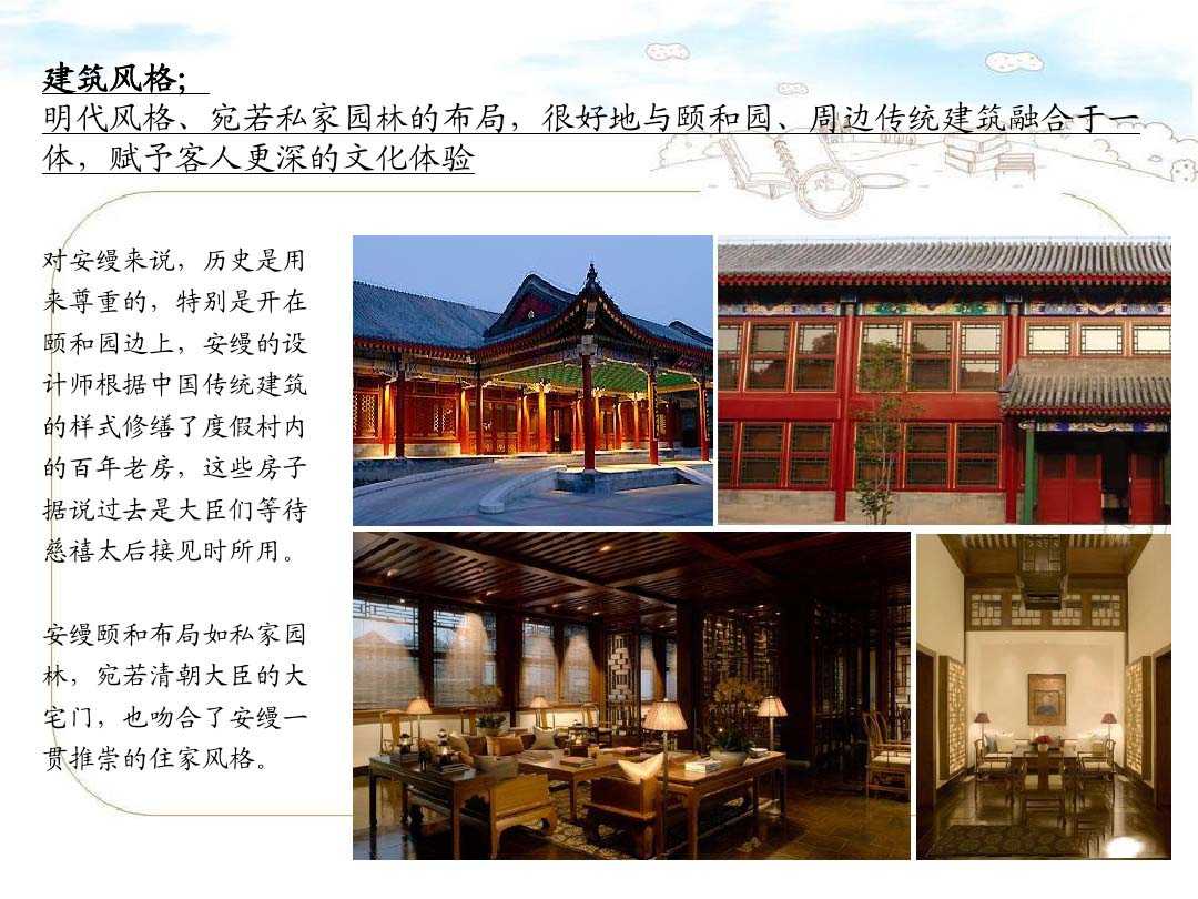 在經(jīng)濟(jì)推動(dòng)社會(huì)發(fā)展的時(shí)代背景下,人們可供選擇的機(jī)會(huì)也越來(lái)越多,每個(gè)人都在書寫人生的故事,而酒店業(yè)同樣在書寫屬于它自己的故事。人們有過(guò)妄想,想要把時(shí)間留住,可是我們都明白時(shí)間是留不住的,但是在時(shí)間慢慢流逝的過(guò)程中人用另一種方式將時(shí)間定格在了某一時(shí)刻,讓之煥發(fā)光彩。在北京的這家五星級(jí)酒店中,時(shí)間留給了我們的不只是回憶,也是一種生活的品味、精神的享受、對(duì)人生價(jià)值觀念的追求。就請(qǐng)大家欣賞一下這家來(lái)自北京的安縵頤和酒店圖文帶給我們的不一般的感受。