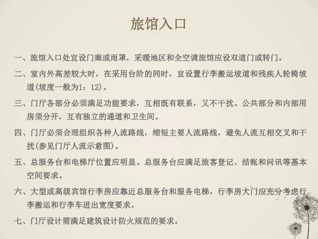 在對旅館入口設(shè)計的時候,要采用什么樣的方式和對功能提出了什么樣的要求等系列問題,都是需要考慮到位的。