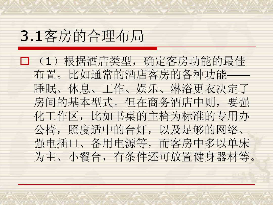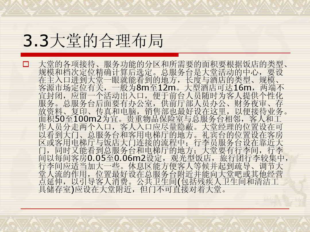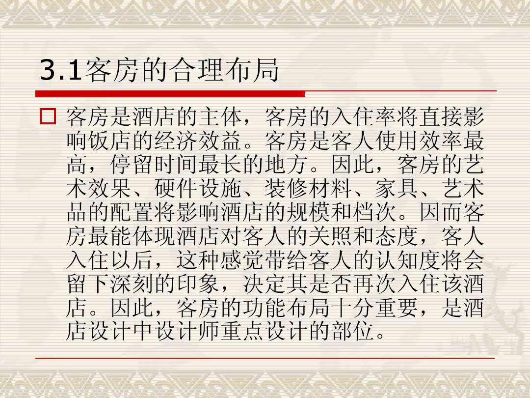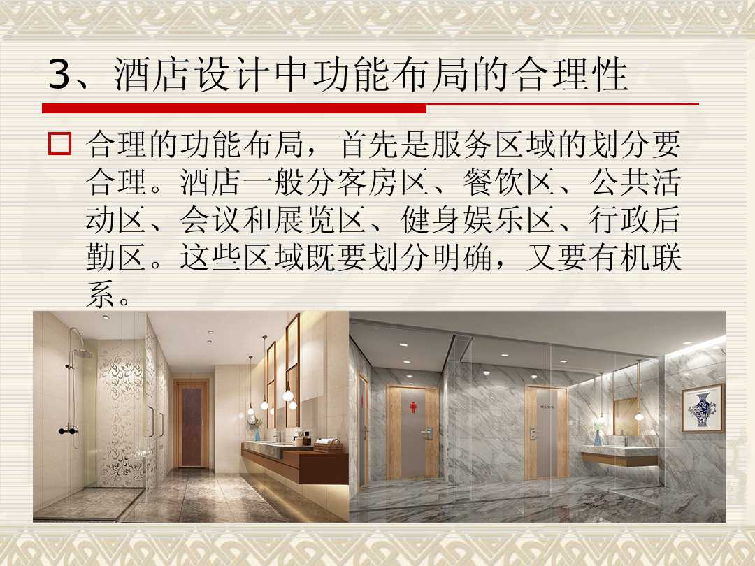 在對酒店進(jìn)行設(shè)計的時候,對于酒店各個區(qū)域功能布局的合理性是各方關(guān)注的焦點。設(shè)備功能的位置擺放、應(yīng)該發(fā)揮什么樣出的作用,這些都是需要參透的問題。有效合理的設(shè)備功能布置,不僅有利于客人的舒適感,還能增加酒店的業(yè)績。