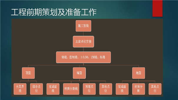 發(fā)布人:水木源創(chuàng) 發(fā)布時間:2019.04.11隨著內(nèi)江經(jīng)濟的快速發(fā)展,內(nèi)江市涌現(xiàn)了一些星級酒店,星級酒店的裝修設計項目在酒店行業(yè)占了很大比例。在酒店裝修設計之前需要對整個五星級規(guī)劃酒店裝修施工組織設計方案,具體承建哪些項目,一般星級酒店主要進行酒店大堂和配套公用區(qū)域內(nèi)的室內(nèi)裝修,包括客房施工、大堂施工、車庫等項目施工,酒店項目體量大,特別是五星級酒店裝修設計項目更大,裝修要求更高,而特點又各不相同。內(nèi)江五星級酒店裝修施工組織設計方案具體包含哪些呢?今天水木源創(chuàng)小編先為您講解五星級酒店裝修施工組織設計方案前期策劃與準備工作之裝修放線施工圖。