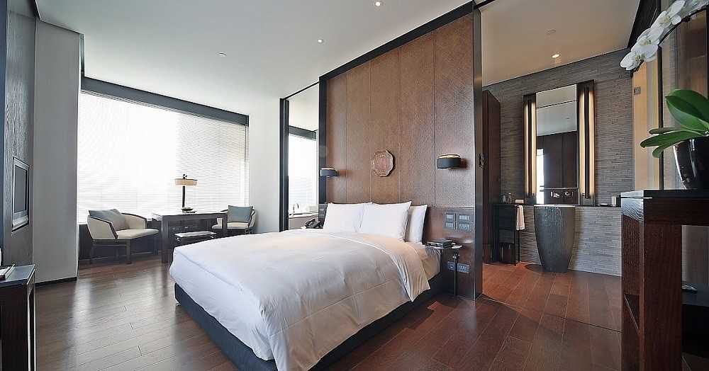 璞麗酒店客房的設(shè)計(jì),充分體現(xiàn)了設(shè)計(jì)師對空間的靈活規(guī)劃,半封閉半開放式的浴室,擴(kuò)大了客房的使用空間,浴室與客廳之間裝有移門,在需要時(shí)也可以將空間隔開。在設(shè)計(jì)用材上,設(shè)計(jì)師同樣使用了中西融合、亦古亦今的手法。銅鑄洗臉臺、龍鱗紋木雕屏風(fēng)、青磚墻面等中式元素,裝點(diǎn)著簡約素凈的空間。寬度不超過1厘米的豎直線條,大面積的同種材質(zhì),和純色的沙發(fā)窗簾等,映現(xiàn)了細(xì)致的質(zhì)感和素雅的氣質(zhì)。這樣精細(xì)的設(shè)計(jì)并不是用同樣的物材就可以復(fù)刻的,設(shè)計(jì)師恰如其分的比例尺寸,以及協(xié)調(diào)井然的搭配布置,才使得所有事物渾然一體,營造出舒適怡人的氛圍。正如文人張岱所說:“至其厚薄深淺,濃淡疏密,適與后世鑒賞家之心力、目力針芥相投,是豈工匠之所能辦乎?蓋技也而進(jìn)乎道矣?!?