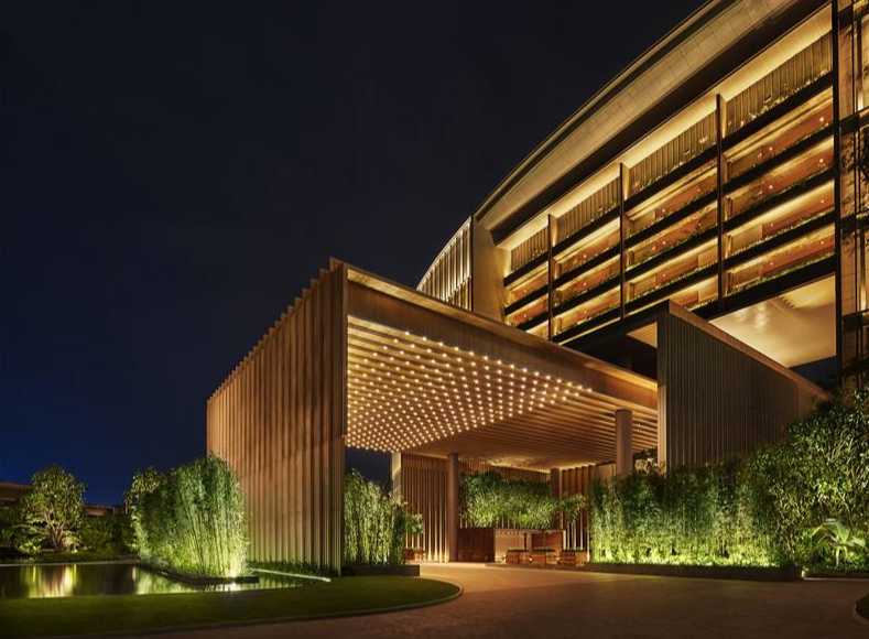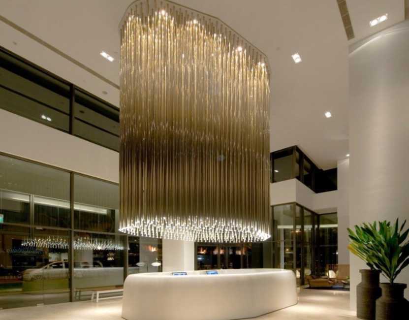 當今的酒店建筑設計中,大堂空間大致可分為水吧、大堂主廳、總服務臺和休息廳四個區域,不同的區域應遵循不同的照度標準要求。而設計師在大堂空間的光環境設計中,很容易模糊了不同區域所需光環境的芝異性,只在宏觀上做調控,忽視了細節區域的氣氛營造,使大堂空間的整體效果趨于平談。無趣。在具體操作上,體現在光源的運用缺少針對性、不夠講究,導致燈具造型或光源的顯色性,照度及色彩與空間氛圍不協調,燈具的布置不合理,最終造成大堂內亮度分布缺少層次。或層次的主體不顯著。