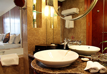 2、相鄰客房間墻:建議采用四層石膏板做間墻,實踐證明效果較好。切忌:千萬不能采用150mm厚的加氣混凝土砌塊或加氣石膏砌塊!其隔音效果是一塌糊涂!若已經采用了該材料做隔墻,無論是正在施工中還是已經投入使用中,都建議進行改造:依順序在加氣混凝土砌塊表面層+一層隔音氈+吸音棉及龍骨+第一層石膏板+第二層石膏板。這樣達到的效果是:隔壁電視開到最大音量時(80~90分貝),勉強能聽到但無法完全聽清楚;相鄰房間相同位置埋裝強弱電線盒時,一定要錯開位置,避免將墻體鑿穿而影響隔音效果;間墻上,所有板與板間,地臺及吊頂接口之間都應該加上連續性的填縫膠。所有電線管道、線槽等等通過間墻及電力插座邊緣,都應該加上隔聲填縫膠以及擠滿在所有形成之空隙里。如果是多層式石膏板墻,所有石膏板之間應為交錯連接。石膏板墻上的檢修口位必須以發泡膠密封。因穿孔造成的縫隙,在25mm以下的,可使用玻璃棉或防火涂料密封。