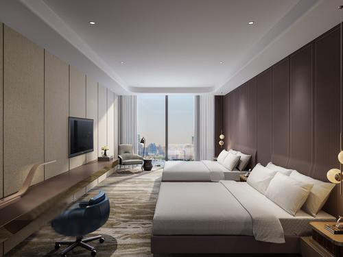 第一、主題酒店設計中的顏色要素:設計室內顏色,包括墻地顏色的選擇、家具顏色的選擇、織物顏色的選擇等。顏色直接影響人的心情與心理。整個房間色彩的處置,首先要肯定一個主色彩,主色彩肯定以后再思索與其他顏色的諧和。居室顏色的中心普通指家具,家具色彩中心肯定以后,就要思索墻壁、空中、門窗和織物的顏色與之諧和。