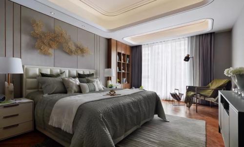 軟裝布置應遵循多樣與統一的原則,根據軟裝大小、色彩、材料、位置使之與室內空間構成一個整體。商務酒店設計中室內空間要有統一的風格和格調,再通過飾品、擺件等細節點綴,與室內硬裝協調統一,這樣進一步提升室內空間環境的品味。