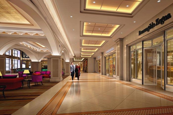 大堂的燈具通常有吊頂、筒燈、射燈、燈帶。燈具種類不同,有時酒店只需要開某一種或幾種燈,因此需要單獨控制。星級酒店設計不可將不同類別的燈具串聯一起控制,如果這樣則達不到需要控制的效果,也不節能。控制方式的選擇通常有兩種,一種是普通開關、一種是自動定時控制。星級酒店設計普通開關控制可以實時地人為控制,靈活性高; 自動定時控制的優點是節省人力,不需要人為控制,缺點是不能隨時開關。因此酒店大堂通常采用普通開關控制。普通開關的設置地點通常在哪里? 酒店的墻面通常是大理石貼的,這些大理石上沒法安裝開關,這時候開關只能設置在前臺。因此星級酒店設計酒店大堂照明控制,通常采用普通翹板開關,每種燈具都需要單獨控制,開關設置在前臺。