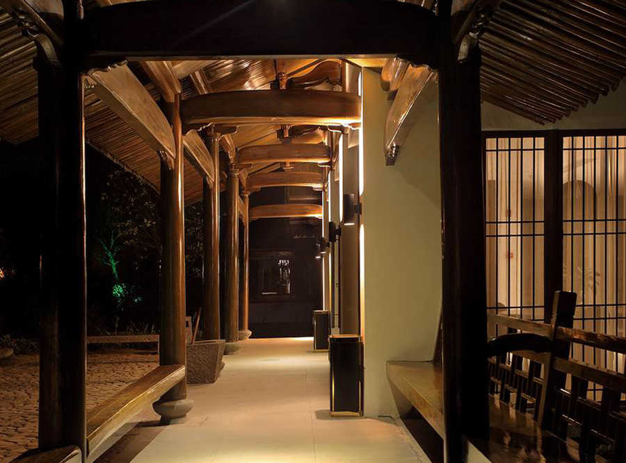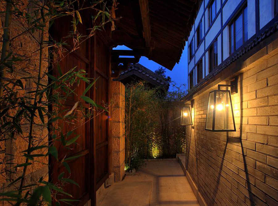 在本案民宿酒店方案設計中,酒店設計師利用建筑原有的框架材料加以裝飾設計,在原來的基礎之上,酒店設計師用現(xiàn)代化的元素對酒店進行了一番勾勒,酒店里的磚墻、照壁、立柱、橫梁、石雕、木雕等都是在原有的基礎之上完整的保留下來的,即使不出酒店,也能深深感覺到這個地方厚重的歷史底蘊。偌大的休閑空間,真是一處讓人閑情雅致的去處。
