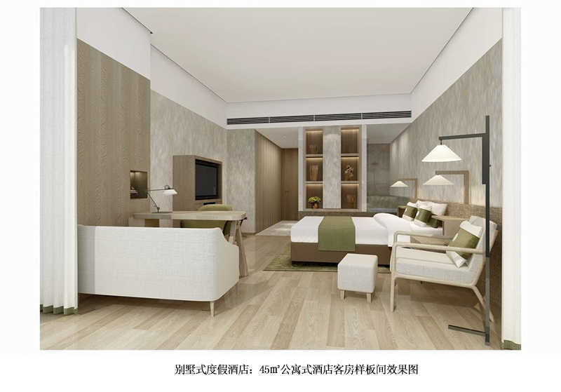 公寓式酒店也有兩個戶型,一種是45平方米的大床房公寓式酒店客房,一種是60平方米的公寓式酒店大床房客房,