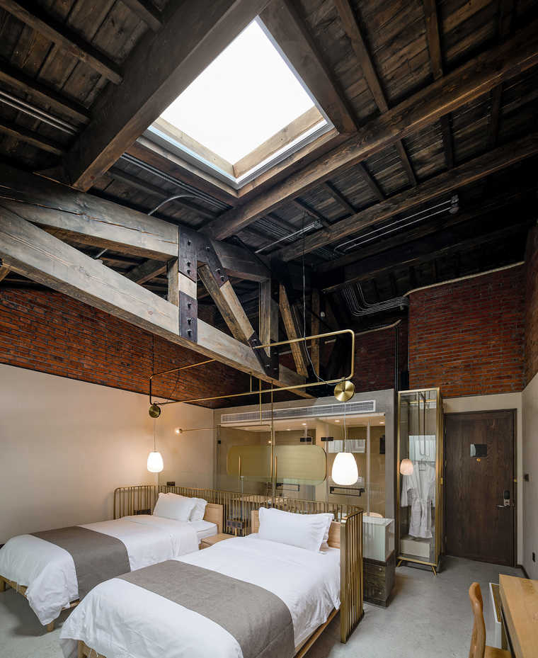 這是一所由舊房改造的精品酒店設計方案,原來建筑空間狹小,室內光線不足,現在看來原來的面貌已經不復存在了。