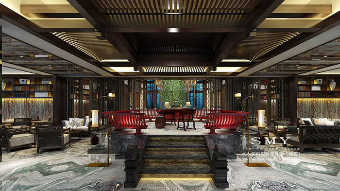 酒店分為水療區、配套區、客房區。建筑以最樸質的中國古代建筑為基調,不做過多的修飾,整體簡潔大方,精致的做工使建筑在簡潔的天體下又精致,使得整個環境即可遠觀亦可褻玩。是整個空間體現著一種“禪”:少即是多!將就點上升到了哲學意義的層次,將人們帶離塵世,走向內心。